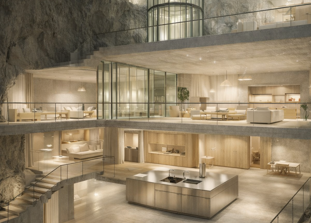 [Didascalia foto: Il rendering di un bunker con piscina dell’azienda californiana Vivos.