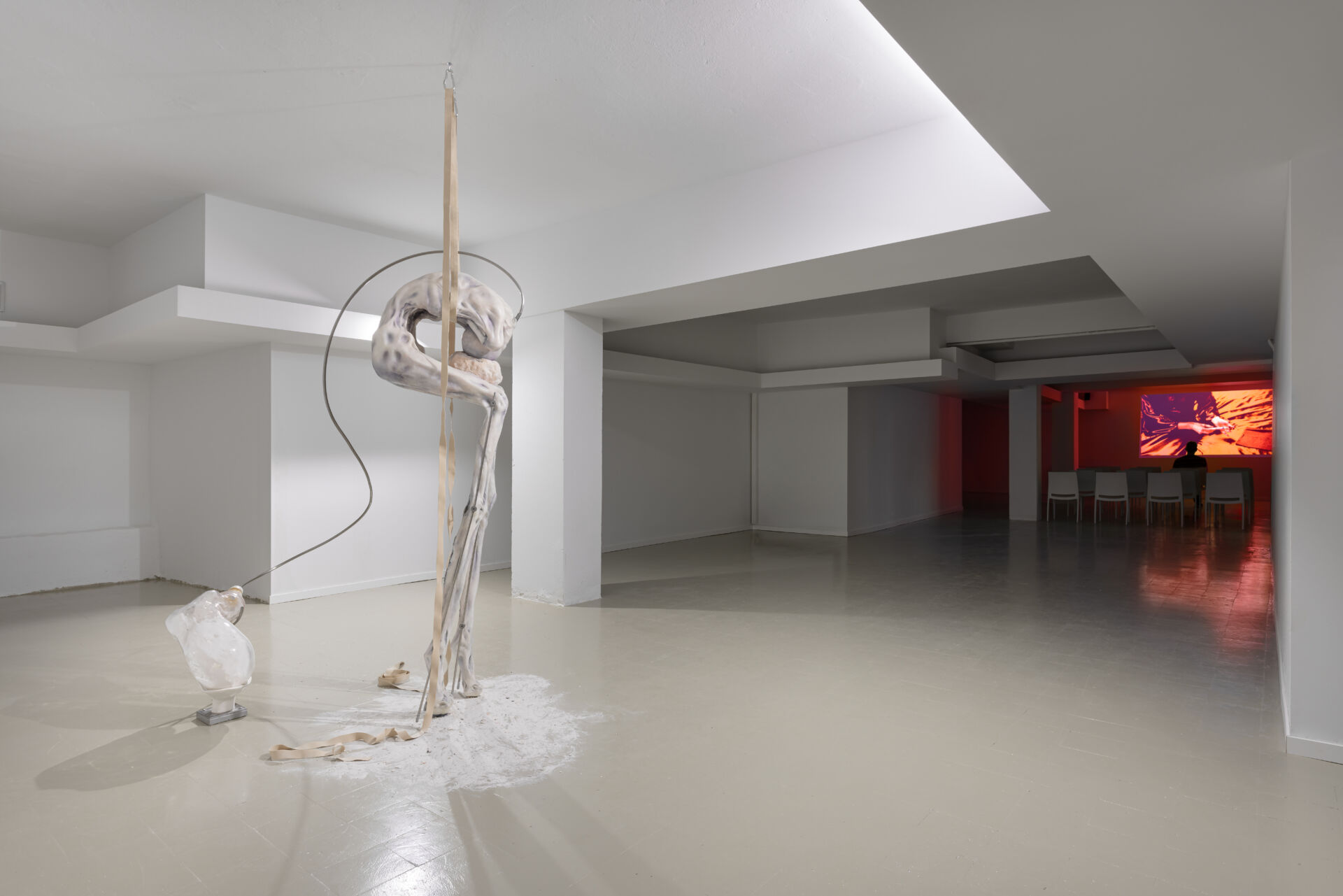 Troviamo strani esseri (viventi?) – “prostetici“, come li definisce Quaranta – anche nella produzione di Ivana Baši?: è il caso dell’alieno di marmo fragilissimo di Belay My Light, the Ground Is Gone, una scultura che “vive nell’ambiente, non solo perché il suo equilibrio fragilissimo cela in realtà un perenne stato di tensione, ma perché il processo che rappresenta produce scorie (la polvere di marmo) che abitano dinamicamente lo spazio“.