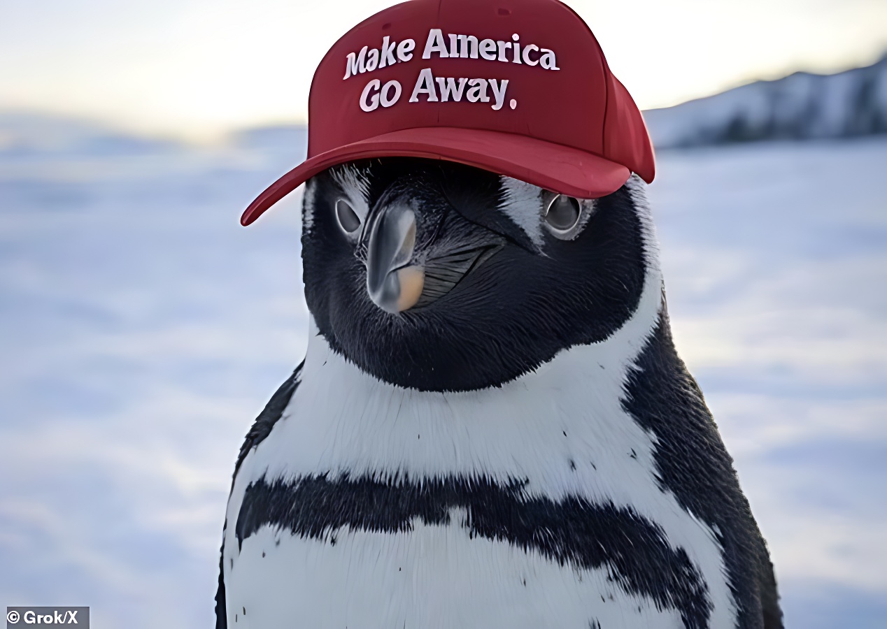 I netizens cinesi non si sono dimenticati dei pinguini delle isole australiane, anch’essi soggetti a dazi: interi eserciti di pinguini con cappellini rossi “Make America Go Away” generati IA hanno invaso il social Rednote in una protesta di massa contro Trump.